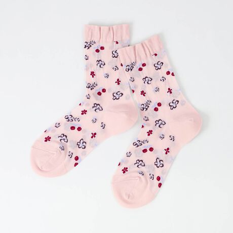 足元にさりげない華やかさをプラスするデザインで、パンプスやバレエシューズとの相性も抜群。