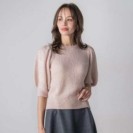 【デザインの特徴】華やかに煌めくラメ感が魅力のフェザーニットトップス。