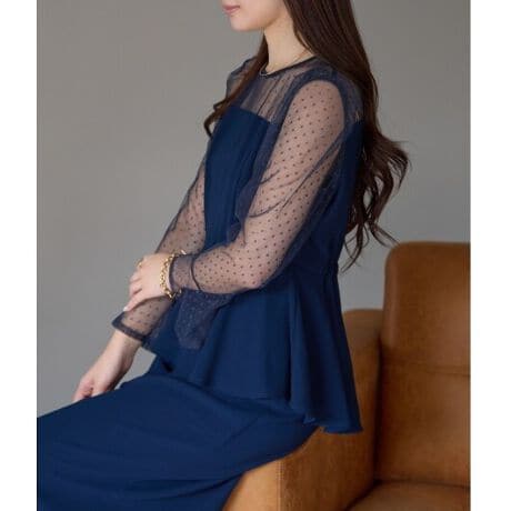 マルイウェブチャネル   /   ワンピースドレス   /   ワンピース   /   ペプラムドレス ドットチュール切替えワンピース
