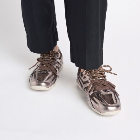 メタリックの艶感と絶妙なカラーリングを施したメッシュは、シーズン問わず使える優秀なアクセント。