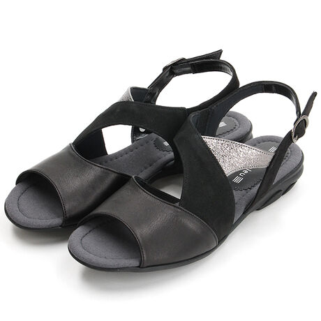 つま先を包み込むようにベルトがクロスしているデザインで前に滑りにくく安心のホールド感です。