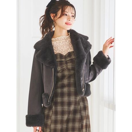 滑らかな質感が特徴のスエード調素材×ふわふわのフェイクファー