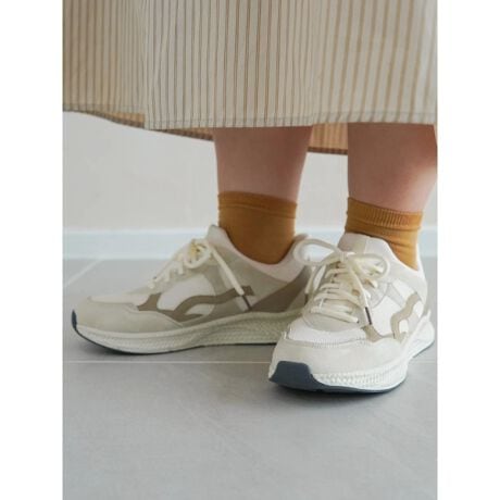 見た目は紐デザインなのに、シュータンのないスリッポンタイプだから、歩くとシュータンがずれるわずらわしさも軽減。