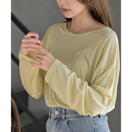 ふんわり軽くて優しい透け感が魅力のトップス。