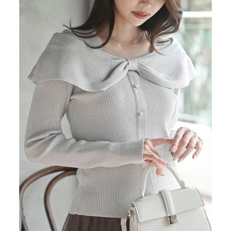 ケープカラーのフェミニンニット
