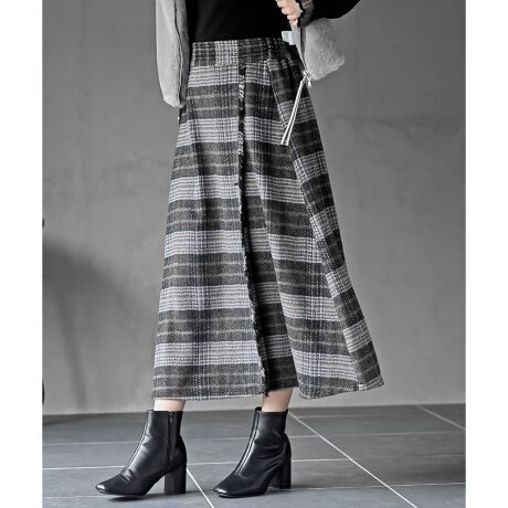 トラッドなツイードチェックがシーズンムードを高めてくれるスカート。