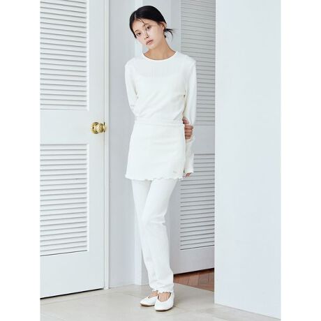 小さなハート柄のアラン模様を、ふくれジャガードで表現したカットソーシリーズ。ミニスカートがドッキングした、下着の透けが気にならないレギンスです。伸縮性に富むカットソーなので、動きやすさも抜群。シリーズ共通であしらったゴールドのプレートがさりげないアクセントになっています。色はクリームとブラウンの2色をご用意。同シリーズのプルオーバーに合わせたり、同時期に展開するハート柄ニットシリーズとのコーディネートもおすすめです。