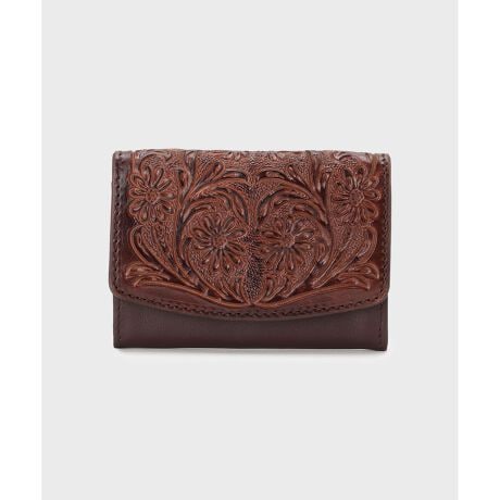 スナップボタン付きのフラップ型の名刺ケース。 上質な牛革に草花を丁寧に彫ったクラス感溢れるデザインです。手元に収まるサイズ感で持ち運びやすい一品。ご自身用にはもちろん、ギフトにもぜひ。