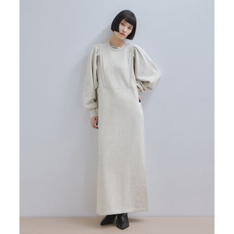 身頃の切り替えと程よくボリューミーな袖が特徴のスウェットワンピース。