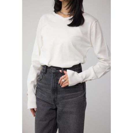 ■格上げ 2WAYボタンデザインニット■ポイントボートネックとVネックを前後2WAYで着用できます。清涼感のある素材とベーシックプラスワンの優秀デザインでシーズンレスに色々な場面で活躍する1枚です。■ディテール前後どちらで着用しても、首周りが綺麗に見える上品な開きにこだわりました。スリットカフと金ボタンで女性らしさときちんと感を一気に格上げします。■スタイリング1枚着でも完成度の高いアイテムでデニムからスカートまでボトムス選びに迷いません。スッキリとしたセットインスリーブでジャンパースカートやサロペットとも相性抜群です。■生地ドライなタッチの素材と、伸縮性のある素材をプレーティングして編み立てた素材です。清涼感と伸びのある快適な着心地が特徴です。糸に加工を施すことで、UVカット・抗ピリング(毛玉になりにくい)・マシンウォッシャブルが可能な多機能素材です。透け感:なし裏 地:なし伸縮性:あり光沢感:なし[注意事項]※画像の商品はサンプルです。実際の商品と仕様、加工が若干異なる場合があります。※画像の商品は光の照射や角度、お使いのモニター環境により、実物と色味が異なる場合がございます。※着用、お取り扱いの際は、アテンションタグをご確認ください。