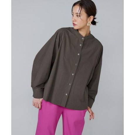 ■デザインワイドなサイジングがポイントのバンドカラーシャツ。デザイン性のあるカッティングやワイドスリーブでモードに仕上げました。サイドに施したデザインスリットがアクセントになっています。袖口に釦を2つ付けしサイズ調整をすることでプッシュアップでき、着こなしをお楽しみいただけます。着こなしやすいクロップト丈もポイントです。ニュアンスのあるコットン素材を使用し、シンプル見えしながらデザイン性の高い存在感のあるシャツです。■素材インドのオーガニック原料を使用し、近江の伝統的な染色技法(近江晒(おうみざらし))で仕上げた素材です。肌に優しく肌触りが良いのが特徴です。独特のナチュラルなシボ感が素材にニュアンスをプラスします。綿素材特有ののサラッとした涼やかな肌触りを存分に感じていただける素材です。・水洗い可■サンプル撮影商品画像の商品はサンプルです。実際の商品とはサイズや色味、素材、デザイン等の仕様が若干変更になる場合がございます。■カラーについては、可能な限り実際の商品に近いカラーで撮影をおこなっておりますが、照明の関係により実際の製品とは色味が違って見える場合があります。またパソコン・スマートフォンなどの環境により、若干製品と画像のカラーが異なる場合もございます。現物と画像のカラー差異については返品理由となりませんので、予めご了承ください。■サイズ表記はあくまで目安となります。