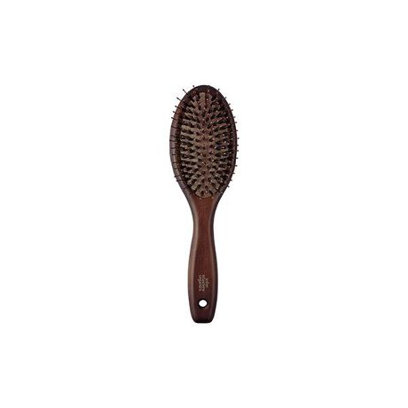 ほどよく硬質な猪毛×トルマリン(*)配合のヘアブラシです。軽く手にフィットしやすい形状の竹製ハンドルを採用しています。心地よい使用感で、髪をまとまりやすく整えるとともに、つやを与えます。広がりやすい髪・太い髪の方におすすめです。(*)頭皮・髪をすこやかに保つ成分<ヘアブラシ/サイズ:H235×W70mm/1種>
