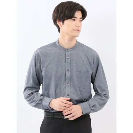 【ストレッチ 吸水速乾 イージーケア】m.f.エディトリアル バンドカラー ビジカジ長袖シャツ