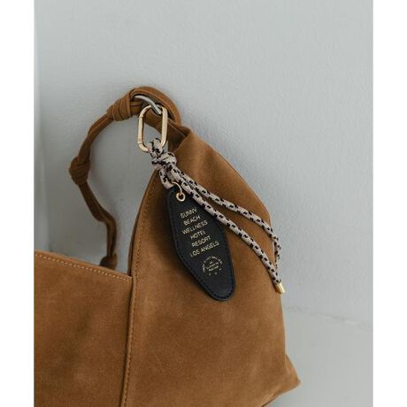 ホテルキー型のチャームをフェイクレザーにすることで、大人も使いやすいデザインに。