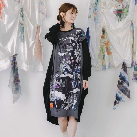 マルイウェブチャネル   /   ワンピースドレス   /   ワンピース   /   ScoLar スカラー 不思議な街柄タック入りワンピース