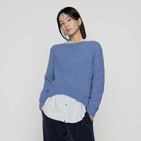 今年は片蛙編みのバイアス使いで生まれるアシンメトリーシルエットが目を惹く一枚でサマになるセーターです。
