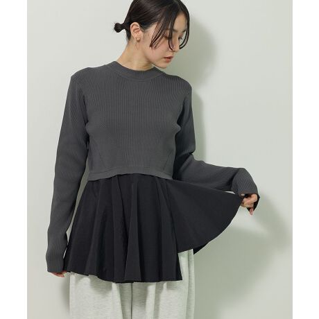 ニット×布帛素材のレイヤード風デザインがお洒落なプルオーバー。ウエスト部分で切り替えたペプラムシルエットがスタイルアップを叶えます。バックファスナー付きで着脱もしやすく、程よくモードなエッセンスもプラス。合わせ方次第でカジュアルからきれいめまで幅広く活躍してくれるおすすめのアイテムです。透け感[ややあり]