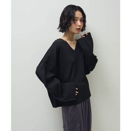 目の詰まったすっきりとした表面感のニット素材で仕立てたプルオーバー。前後どちらを前にしても着用できる2WAY仕様で着こなしの幅も広がります。ボディオフのサイズ感でリラクシーな着心地なのも魅力的。シンプルなデザインで合わせるボトムを選ばず、デイリースタイルに活躍してくれるおすすめのアイテムです。透け感[なし]