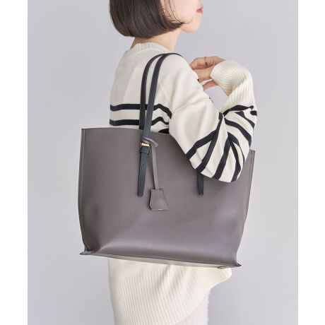 スムースなフェイクレザーで仕立てたスクエアフォルムのデザインバッグ。A4サイズの書類もすっぽりと収まるオフィススタイルにぴったりのひと品です。メインファスナー収納に加え、あおりポケットを設けた3層構造は使い勝手も抜群。持ち手部分やサイドの配色コントラストも洒落感のあるディテールポイントです。