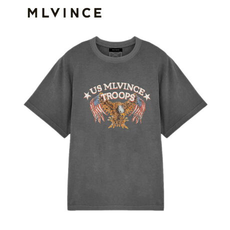 星条旗を纏ったイーグルと「US MLVINCE TROOPS」のレタリングをヴィンテージ調に落とし込み、存在感のある一枚に仕上げました。
