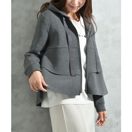 [型番:23143023]大人気!優しい肌さわりが魅力洗練されたフリルパーカー空気を纏ったような優しい着心地がポイントです。シンプルなパーカーに大き目なフリルを施し、カジュアルなアイテムながら女性らしく着まわせるお勧めな1枚です。フードも大き目で小顔効果も期待できます◎またフード先にはワイドなグログランテープを使用しアクセントをプラス。落ち着いた大人カジュアルコーデに決まるお勧めなパーカーです。【品番:23142023と同型です】