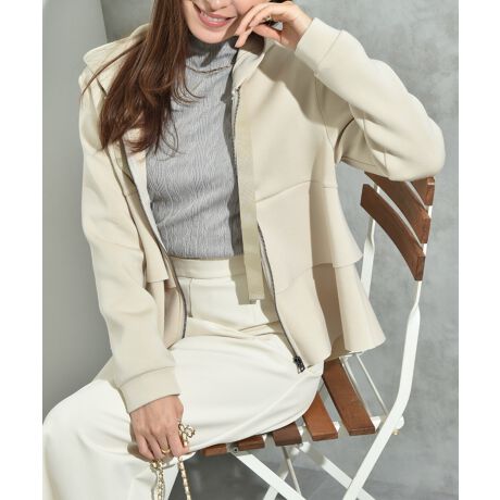 [型番:23143023]大人気!優しい肌さわりが魅力洗練されたフリルパーカー空気を纏ったような優しい着心地がポイントです。シンプルなパーカーに大き目なフリルを施し、カジュアルなアイテムながら女性らしく着まわせるお勧めな1枚です。フードも大き目で小顔効果も期待できます◎またフード先にはワイドなグログランテープを使用しアクセントをプラス。落ち着いた大人カジュアルコーデに決まるお勧めなパーカーです。【品番:23142023と同型です】