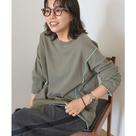 配色メローを効かせたワッフル生地のデザインプルオーバー。凸凹のある表面感で通気性も良く、1日中快適な着心地を叶えます。体のラインを拾わないルーズなボックスシルエットも魅力的。ワイドパンツに合わるだけで今年らしいメンズライクなスタイリングが完成するおすすめのアイテムです。透け感[なし]