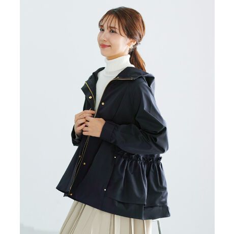 nanotex機能付 撥水加工 ティアードデザイン フード付き パーカー レディース 通勤対応 オフィス デイリー きれいめ