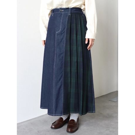 [型番:25410678790]チェックプリーツ切り替えでシーズンらしい着こなしを楽しめるスカート。裾に向かってなだらかに広がるAラインのシルエットは、女性らしい立体感を演出します。バックのウエストゴム仕様がラクな着心地を実現。トップスをタックインしたメリハリのあるコーディネートがおすすめです。Hare no hi/ハレノヒ