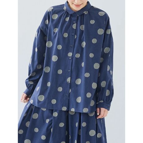 [型番:25410677586]表面感のあるドットジャガードが華やかさを演出するブラウス。裾の長さは前後で異なっているので、後ろに流れるようなスタイリングを楽しめます。コットン100%を使用した肌触りのやさしい着心地がポイント。ボトムスにタックアウトしたラフなコーディネートがおすすめです。Hare no hi/ハレノヒ