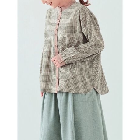 生地端の配色切り替えが表情豊かな印象を与えるブラウス。