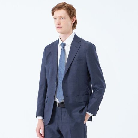 シングル2つボタン、フラップポケットモデル。袖ボタンは4つ重ね仕様。裏仕様は軽量化を図った裏地切り替えの広見返しを採用。内ポケットを3か所に配置しています。