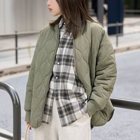 今までのものよりソフトな生地感で着心地が軽やかに。カジュアルなキルティングとフロントジップで見た目も使い勝手も◎。