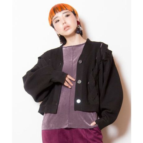 [型番:700010-354K]着丈はコンパクトながら存在感を放ち、リボンの様な編み込みがスタイリングに甘さをプラス。緩めのシルエットで秋冬のレイヤードスタイルを楽しんで。===========================透け感: なし伸縮性: あり光沢感: なし裏地: なし素材について: 伸びの良い、もっちりとしたボンディング風のハイゲージ===========================