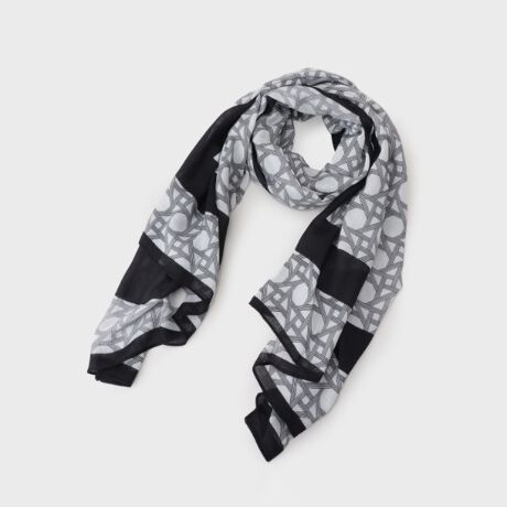 シンプルな装いにさっと羽織るだけで、洗練された大人の雰囲気を選出できるモノトーンストール