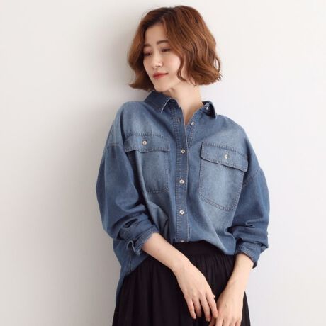 デニムシャツを探していたところ、ショート丈は珍しいと思い購入しました。ロングスカートやワイドパンツと相性が良いです。生地はやわらかくゴワつく感じは無いです。冬はセーターの中に着用して襟を出して着てみたいと思います。