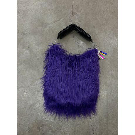 ボディはふわふわのモンスターファー、ショルダーストラップにはフェイクレザーを採用し、異素材のコントラストがコーディネートを一段と印象的に仕上げます。