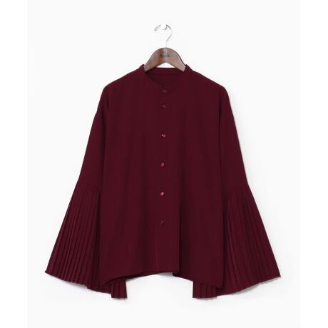 [型番:7CC-5311-2025]袖口部分にプリーツ加工を施したトップス。インナートップスとしても重宝できる一枚。ならいワンピースと合わせれば、袖のプリーツがちらりと覗きます。衿元は丸みのあるシャツ仕様でどんなコーディネートにも合わせやすいデザインです。