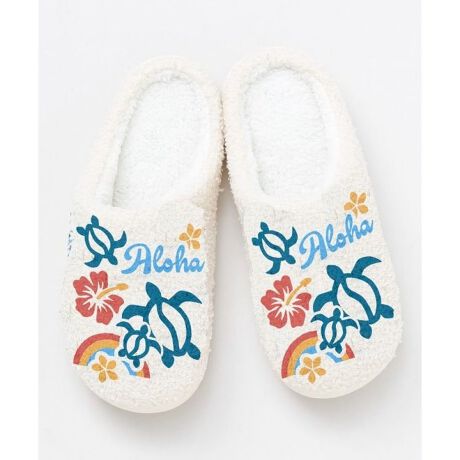 [型番:46LP5302-2025]ハワイで人気のホヌ柄がサガラ刺繍されたスリッパ 。インソールが低反発クッションなので、長時間はいても疲れにくいです。ハワイの明るいデザインは、お家の中で過ごす時間をわくわくさせてくれます。裏面滑り止め加工