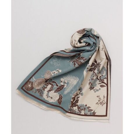 [型番:7CJP5309-2025]モダンな雰囲気の花々が連なる様子を描いたストール。ビンテージ風の色合いは、和装と合わせても上品な雰囲気を楽しめます。幅が広めなので、肩からかけてショールとしても使用できます。ツートンカラーで、巻いたときに表情が変わるのがポイント。