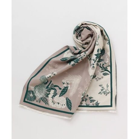 [型番:7CJP5309-2025]モダンな雰囲気の花々が連なる様子を描いたストール。ビンテージ風の色合いは、和装と合わせても上品な雰囲気を楽しめます。幅が広めなので、肩からかけてショールとしても使用できます。ツートンカラーで、巻いたときに表情が変わるのがポイント。
