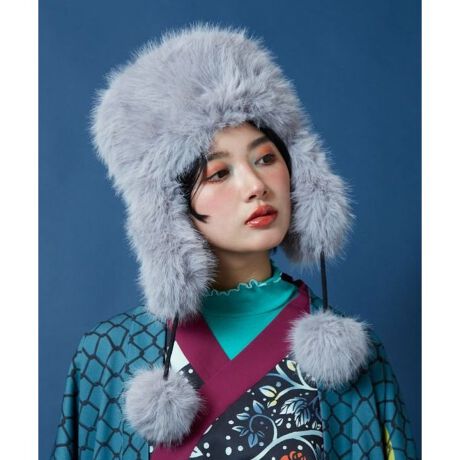 [型番:7CJP5307-2025]耳まですっぽりと覆えるファー素材の帽子。普段の洋服はもちろん、和装に合わせてもモダンな雰囲気を楽しめます。