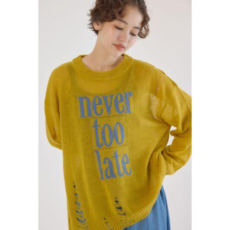 ■ポイントメッセージの配色がポイントで大胆なダメージを加え、エッジを効かせたデザインのニット。■ディテールニットの編み方でダメージ風に見えるように表現。■スタイリングシンプルなコーディネートにはもちろん、グランジスタイルにもおすすめ。タンクトップやキャミソールをインナーに着用し、カーゴパンツやデニムパンツはもちろん、ショート丈のボトムスと合わせるのもおすすめです。■生地モヘヤタッチのアクリル100%の素材を使い、 ほどよい柔らかさと秋冬らしい起毛感を表現。ダメージ加工がはいっていますので、引っかかりには、十分注意して、着脱も取り扱いください。ダメージ加工も1点1点、個体差は生じます。ご了承ください。■透け感:ややあり■裏 地:あり■伸縮性:ややあり■光沢感:なし[注意事項]※画像の商品はサンプルです。実際の商品と仕様、加工が若干異なる場合があります。※画像の商品は光の照射や角度、お使いのモニター環境により、実物と色味が異なる場合がございます。※着用、お取り扱いの際は、アテンションタグをご確認ください。