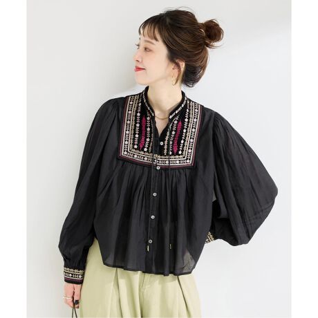 オリエンタルな雰囲気の繊細な刺繍が魅力のブラウス。