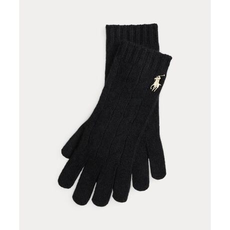 ウールとカシミヤの糸を使用したケーブルニットのグローブ。カフスにシグネチャーのポニー刺繍のアクセント・リブニットのカフス・両カフスの上にシグネチャーのポニー刺繍※商品の色味は、光のあたり具合など諸条件により色感が多少異なって見える場合がございますので予めご了承下さい。 【素材】・毛 90%、カシミヤ 10%【生産国】中国