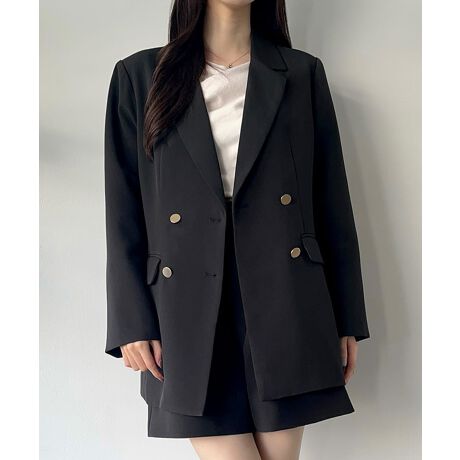 【肩パット入り】金釦オーバーサイズジャケット+ショートパンツset