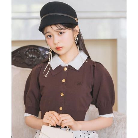 旬のレイヤードスタイル&ゴールドボタンで魅せる、大人かわいいフェミニントップス【Design】・トレンド感たっぷりのレイヤード風デザインで、一枚で着映える主役トップス♪・ゴールドボタンと胸元のロゴ刺繍が、さりげなく華やかさを添えてくれます。・シャツ部分は一体型なので、着るだけで完成されたレイヤードスタイルが楽しめます。・コンパクトな丈感でアウトしてもバランスが取りやすく、スタイルアップ効果も期待♪・カジュアルなお出かけから、きれいめなワンマイルコーデにもぴったりな万能アイテムです!・被り仕様。【Fabric】・柔らかな素材で心地よく、襟と袖はハリのある生地でメリハリをプラス。・ご自宅でお手入れが出来るのも嬉しいポイント♪・モカ、ブラウン、グレー、ブラックの4色展開となります。【Care】手洗い可能