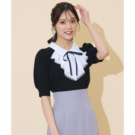 可愛さも上品さも叶える、とっておきの一枚【Design】・華やかさのある襟とレースラッフルのデザインが、トレンド感たっぷりのプルオーバー♪・取り外し可能なリボンタイ付きで、気分に合わせてアレンジが楽しめます。・後ろ姿にはさりげないパールボタンが施されていて、360度かわいさを演出!・スカートにインしてクラシカルに、ワイドパンツと合わせて大人っぽくも着こなせます♪・一枚持っておけば春先まで長く活躍してくれる万能アイテムです◎・被り仕様、後ろは涙開きのボタン留め仕様。【Fabric】・柔らかくしなやかな着心地。・ご自宅でお手入れが出来るのも嬉しいポイント♪・ピンク、チャコール、ブラックの3色展開となります。【Care】手洗い可能