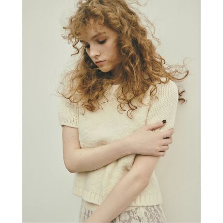 ふんわりとした質感が魅力のブークレ素材で仕立てたショートスリーブニット。