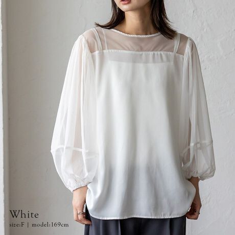 キャミソールを重ね着しているようなデザインで、1枚で奥行きのあるスタイリングが完成。